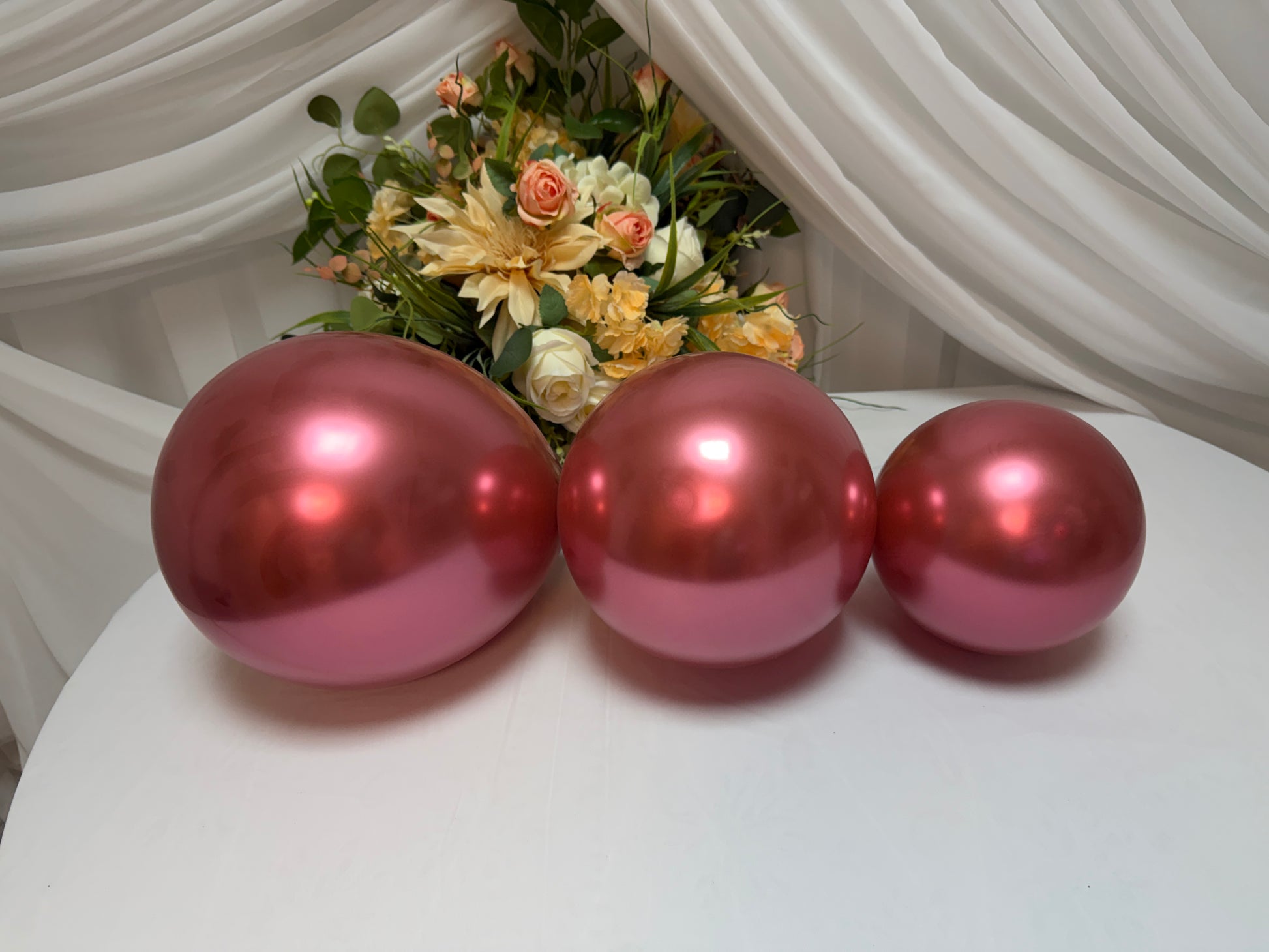 Baloanele cromate roz inchis din latex reprezintă o alegere elegantă și modernă pentru decorarea evenimentelor speciale. Finisajul cromat oferă un aspect lucios și sofisticat, ideal pentru aniversări, nunți, botezuri, petreceri tematice sau evenimente corporate.