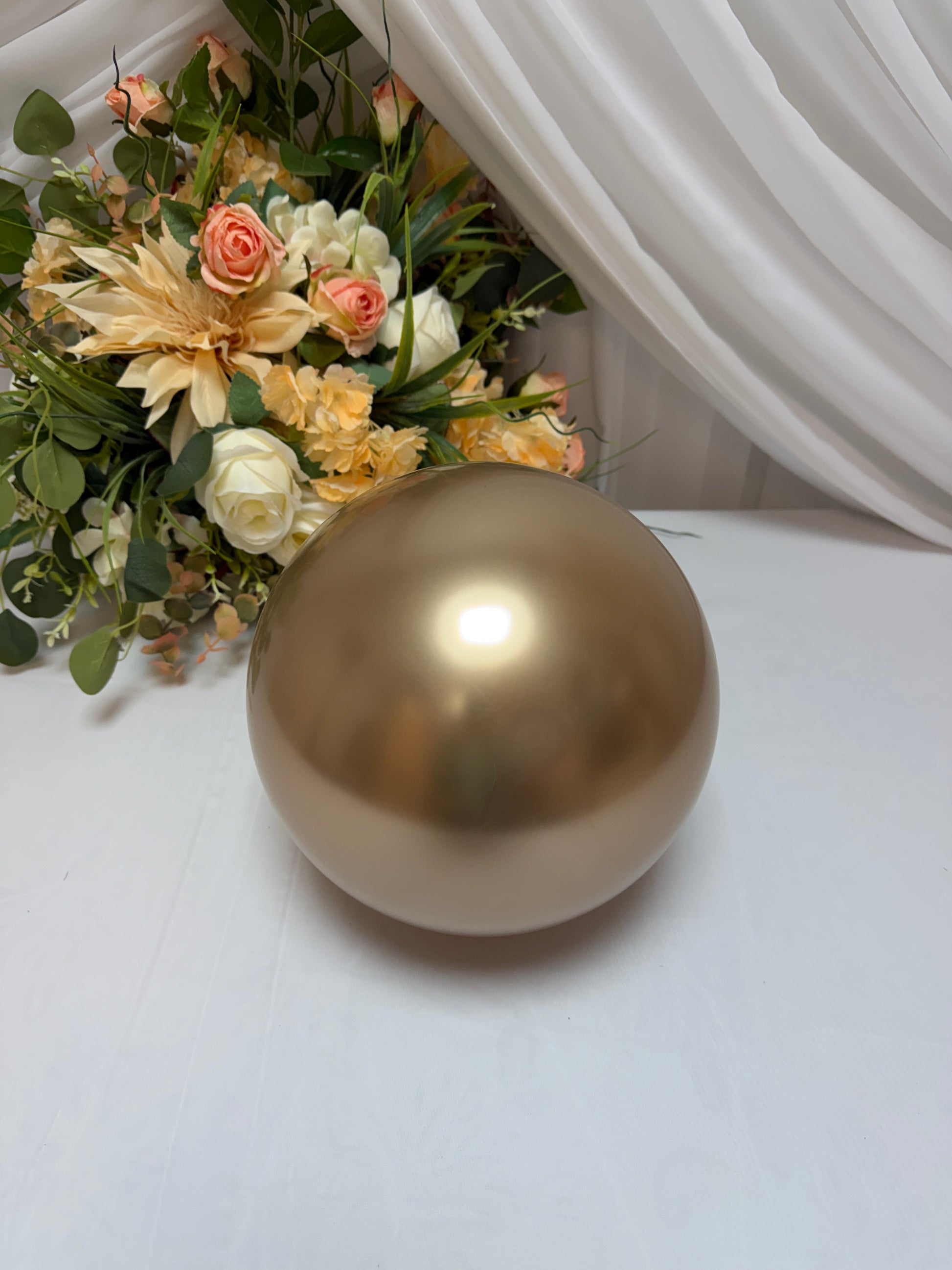 Baloanele cromate auriu metalic din latex reprezintă o alegere elegantă și modernă pentru decorarea evenimentelor speciale. Finisajul cromat oferă un aspect lucios și sofisticat, ideal pentru aniversări, nunți, botezuri, petreceri tematice sau evenimente corporate.