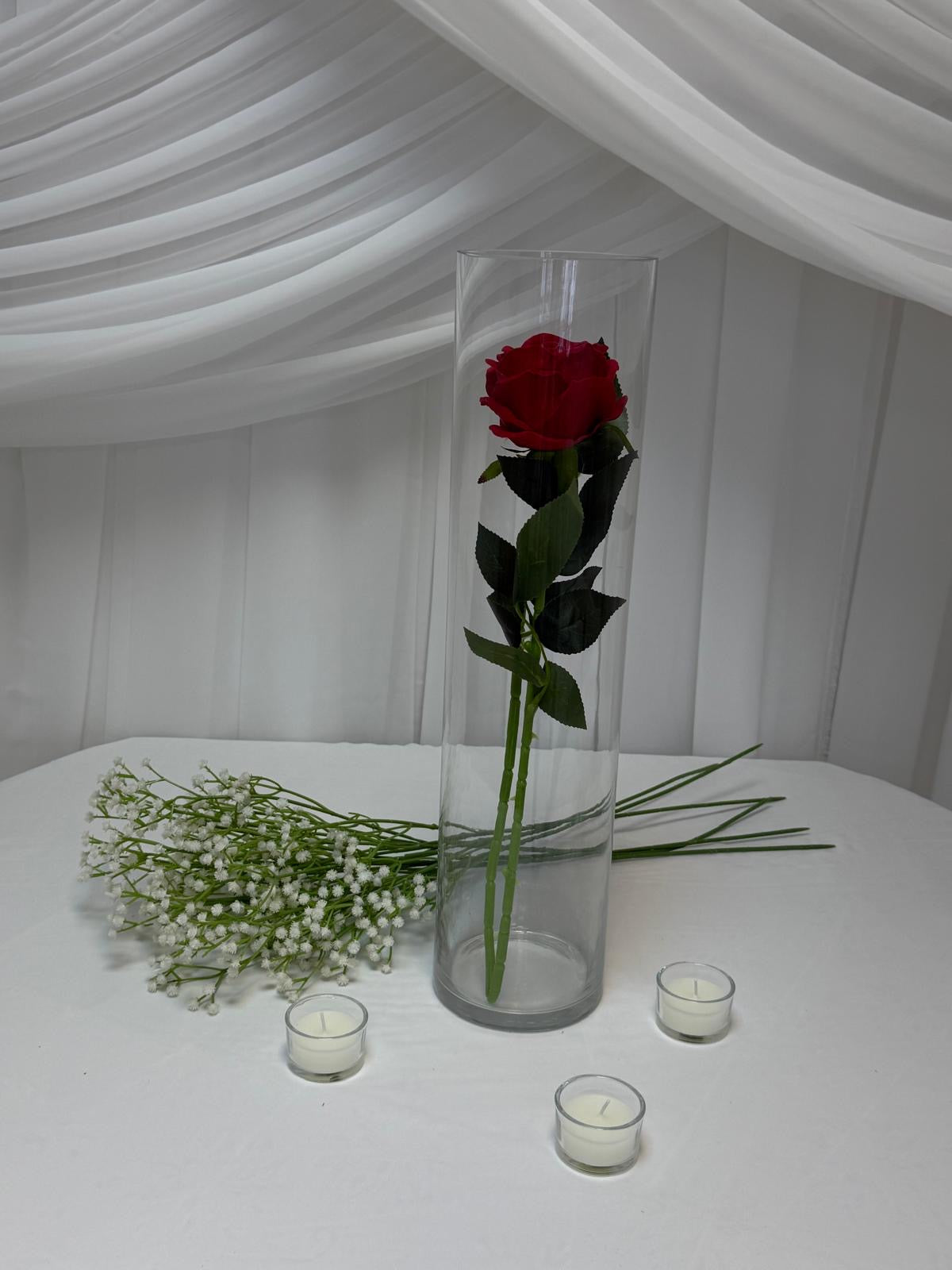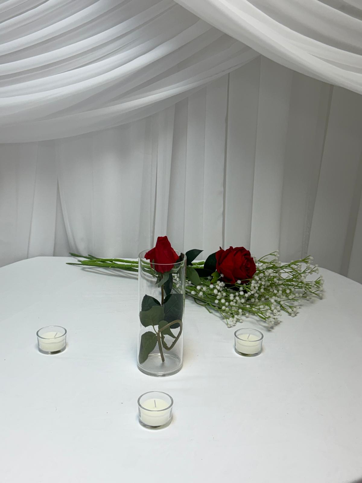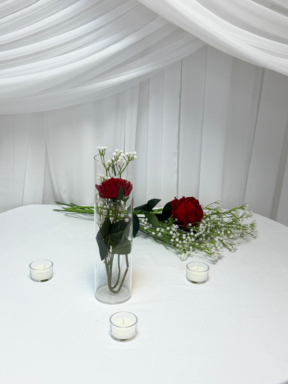 Datorită designului simplu și versatil, vaza cilindrică este ideală pentru decorarea meselor la evenimente precum nunți, botezuri, cununii, petreceri tematice sau evenimente corporate. Poate fi utilizată cu flori naturale sau artificiale, lumânări, cristale decorative ori alte accesorii specifice decorului.