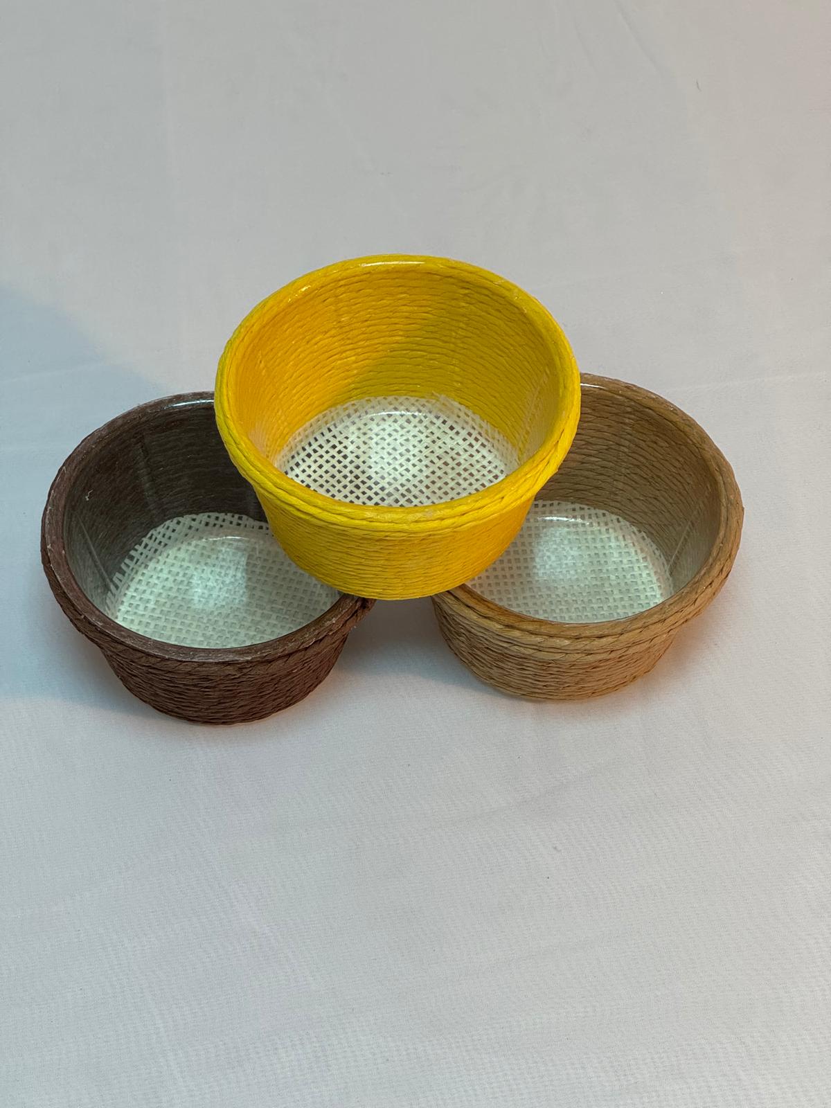Disponibile în trei culori atractive – bej, maro și galben – aceste coșulețe adaugă un plus de culoare și căldură oricărui spațiu. Sunt ideale pentru organizarea obiectelor mici, a produselor cosmetice, accesoriilor, articolelor de birou sau pentru decorarea mesei și a rafturilor.