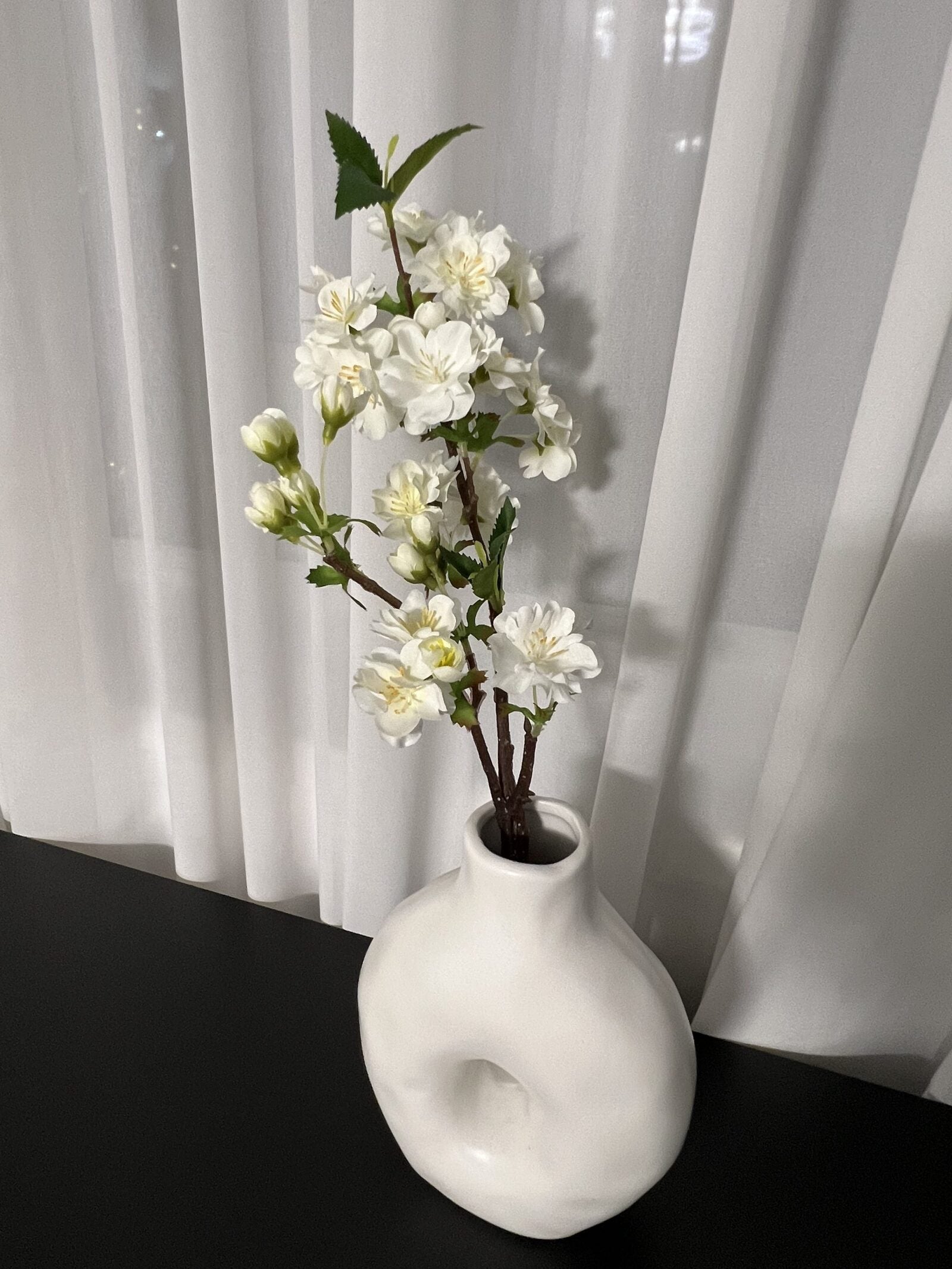 Crenguțe de cireș artificiale în nuanțe delicate de alb și roz, care aduce un strop de primăvară în orice încăpere. Aranjament floral atemporal, cu crenguțe de cireș artificiale, perfect pentru a decora spații moderne sau clasice.