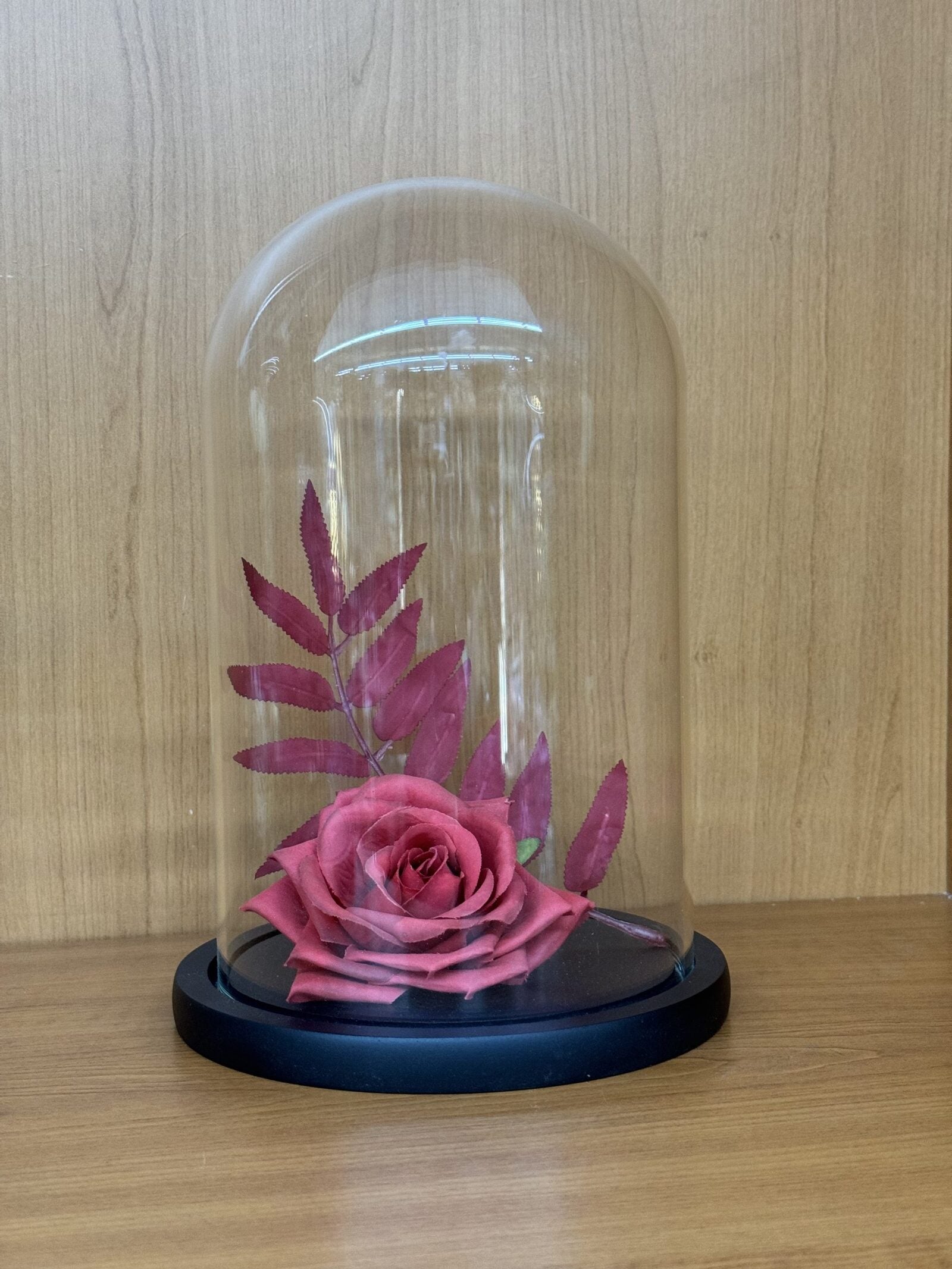 Fiecare cupolă este realizată cu atenție la detalii, având un suport solid din lemn negru care adaugă un aspect sofisticat. Sticla transparentă oferă o vizibilitate clară și protecție împotriva prafului și altor factori de mediu, menținând astfel aspectul impecabil al obiectelor expuse.