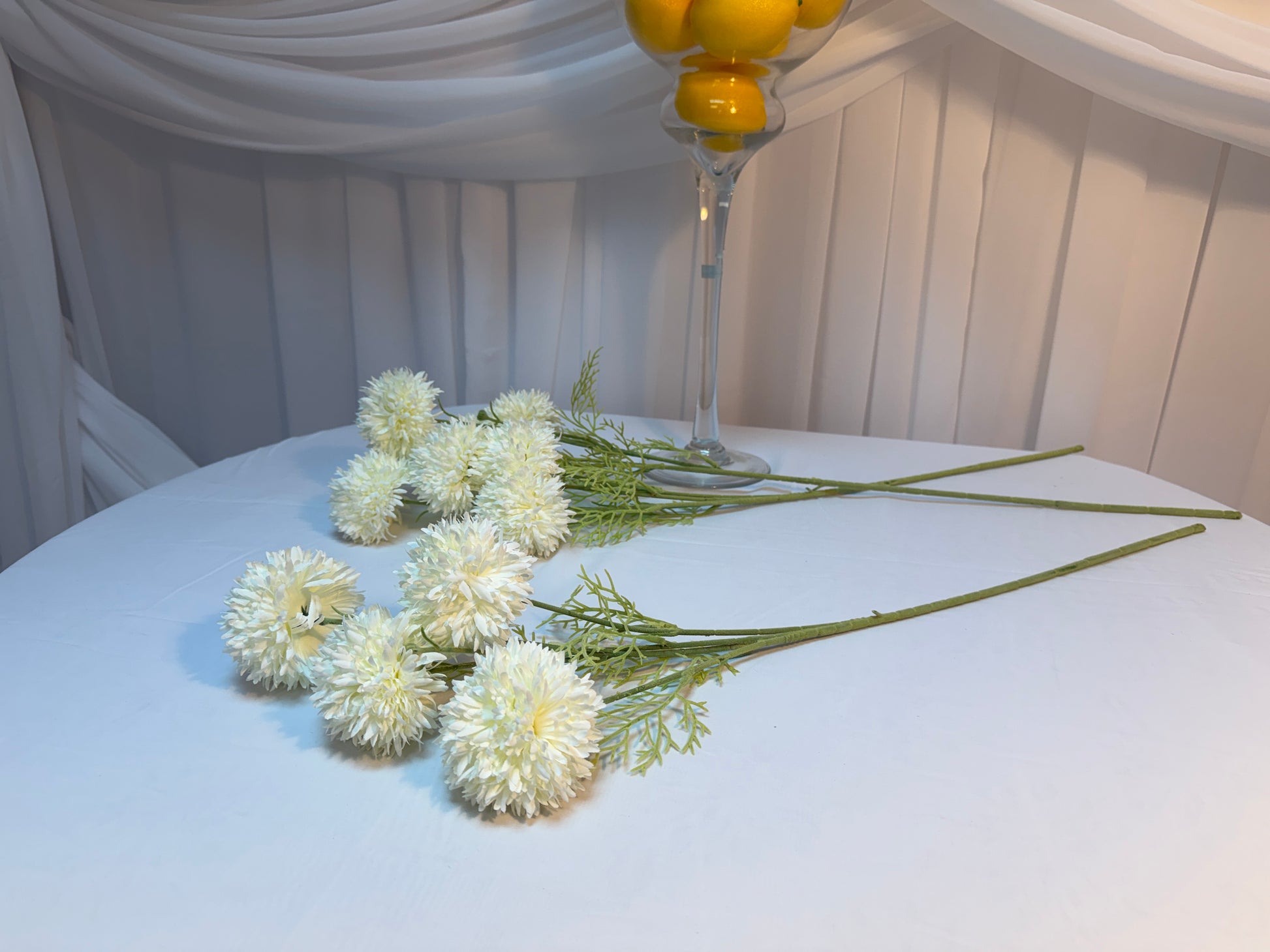 Fir artificial cu crizanteme bombisori, ideal pentru aranjamente florale și decorații sezoniere. Lungimea de 78 cm oferă flexibilitate în crearea unor compoziții volumetrice și elegante. Florile sintetice păstrează aspectul proaspăt și colorat pe termen lung, fără necesitatea întreținerii. Perfect pentru decorarea interioară, aranjamente în vaze sau creații florale personalizate. Material durabil și ușor de manipulat, potrivit atât pentru profesioniști în design floral, cât și pentru pasionații de decorațiuni.