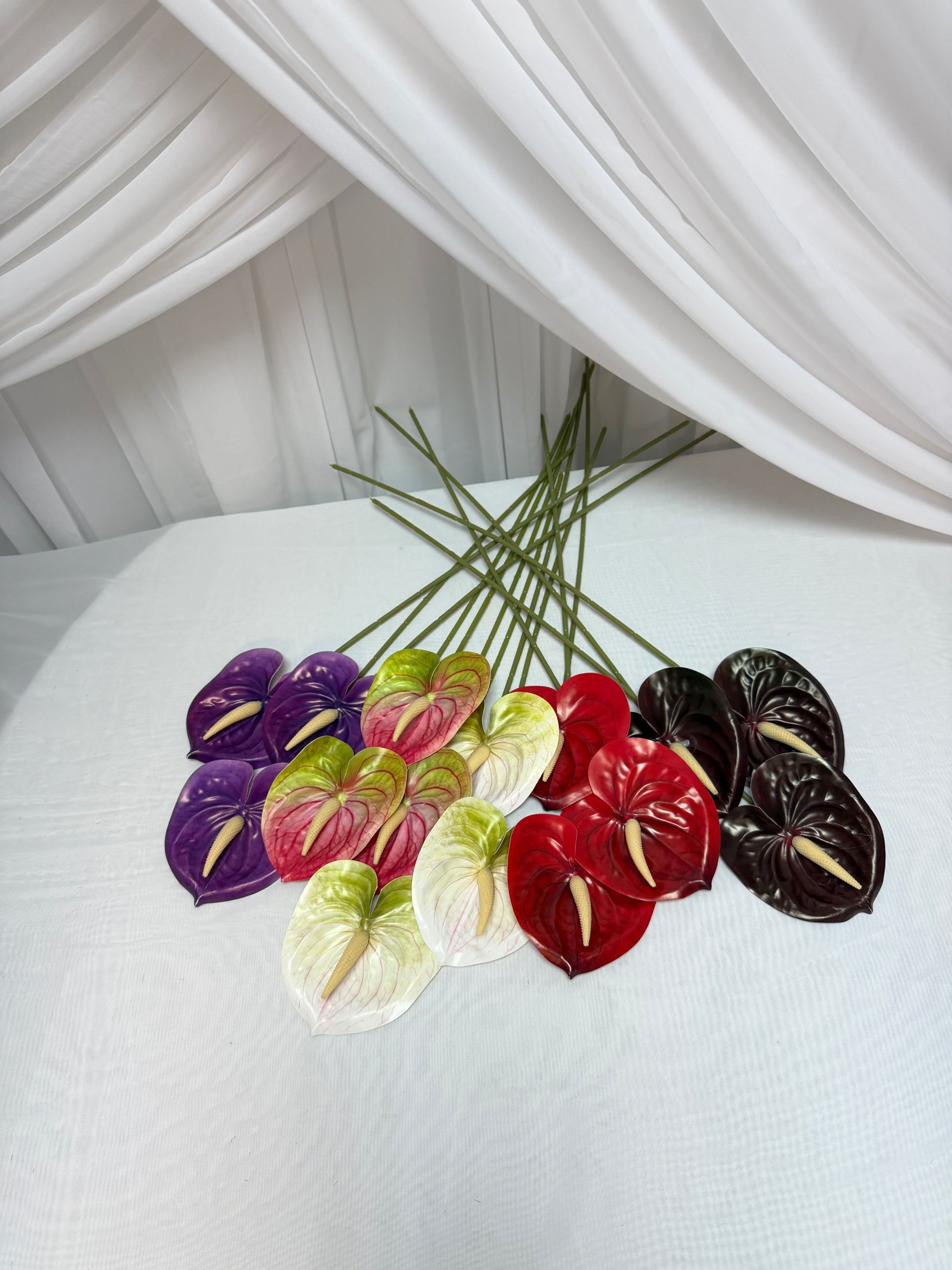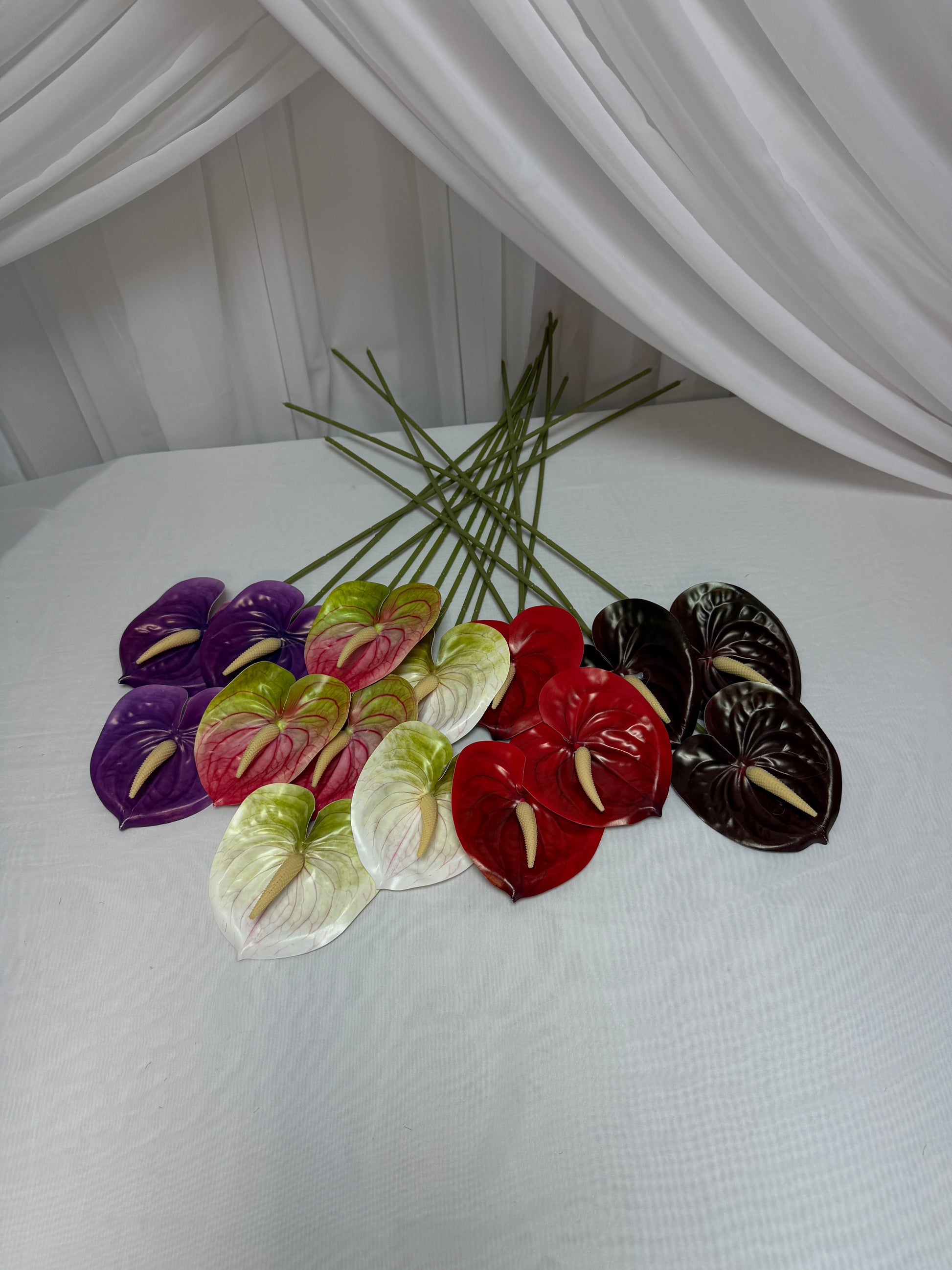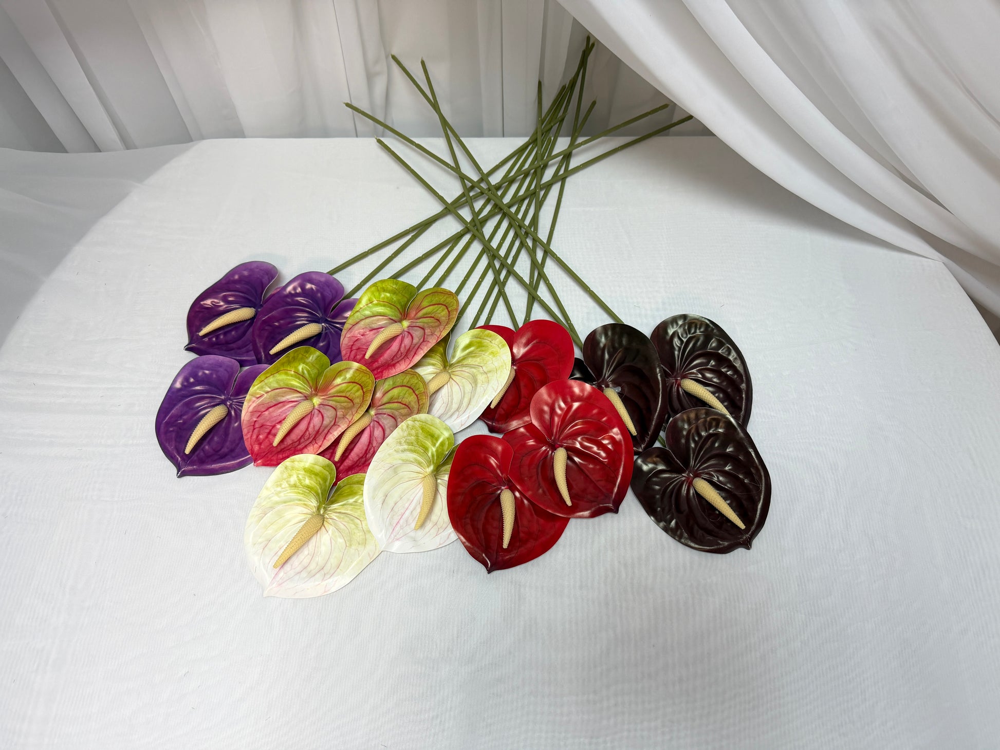 Aceste flori artificiale anthurium sunt perfecte pentru vaze, decoruri interioare, birouri, spații comerciale sau evenimente precum nunți și aniversări, fără a necesita întreținere.