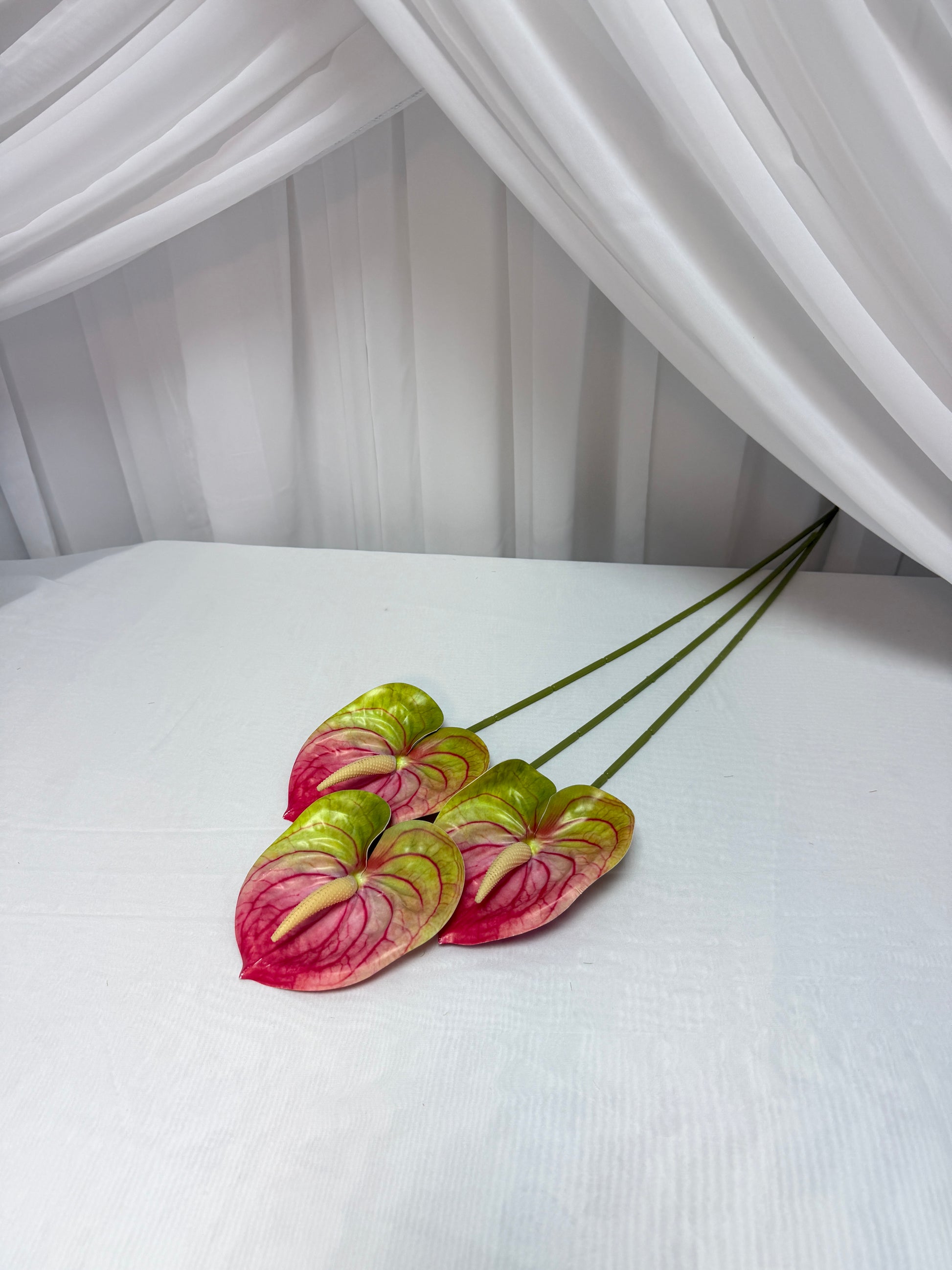 Adaugă un accent exotic și modern decorului tău cu aceste flori artificiale de anthurium, ideale pentru aranjamente elegante și spații contemporane. Forma distinctivă și luciul specific florii oferă un efect vizual rafinat și deosebit.