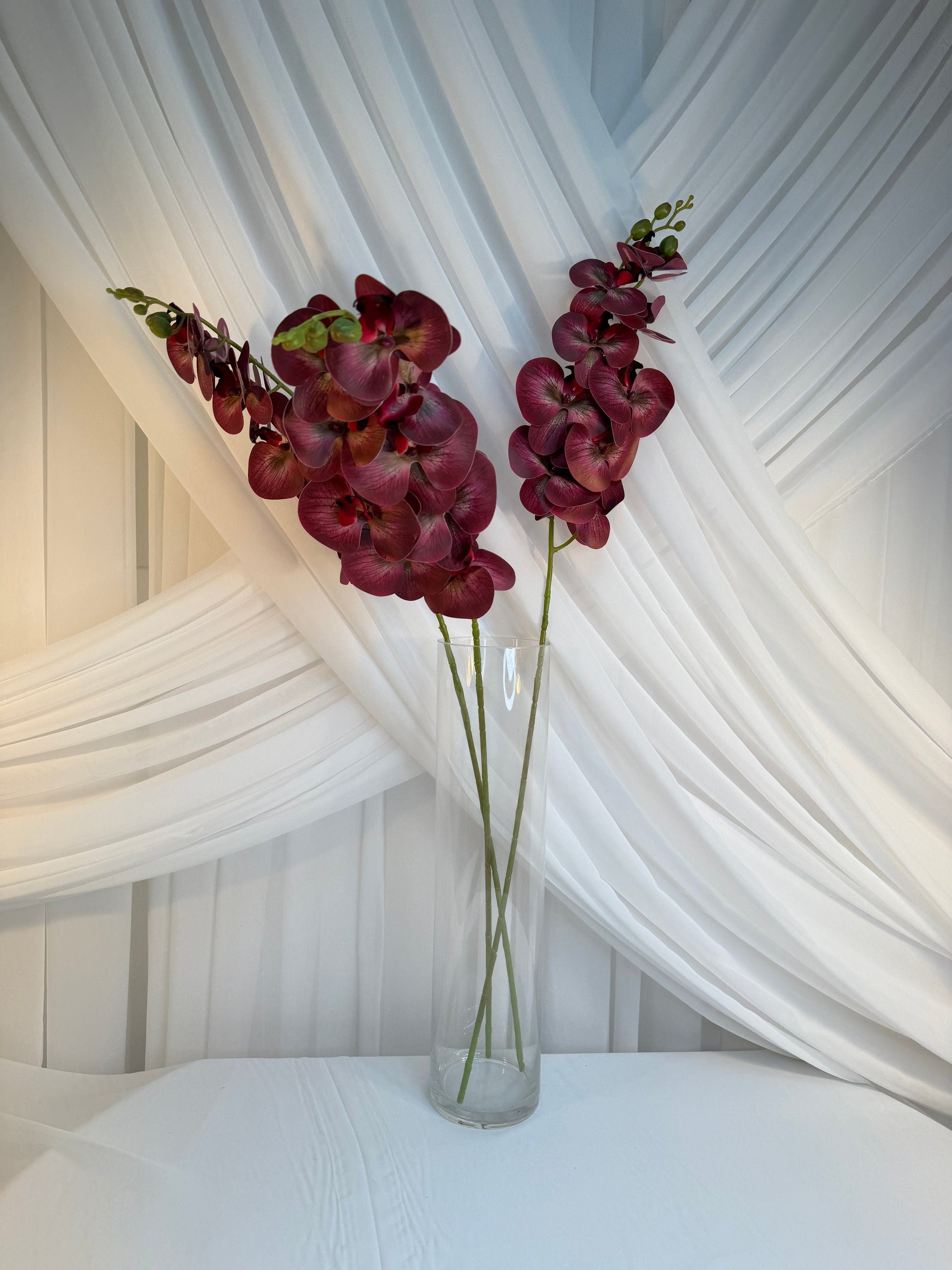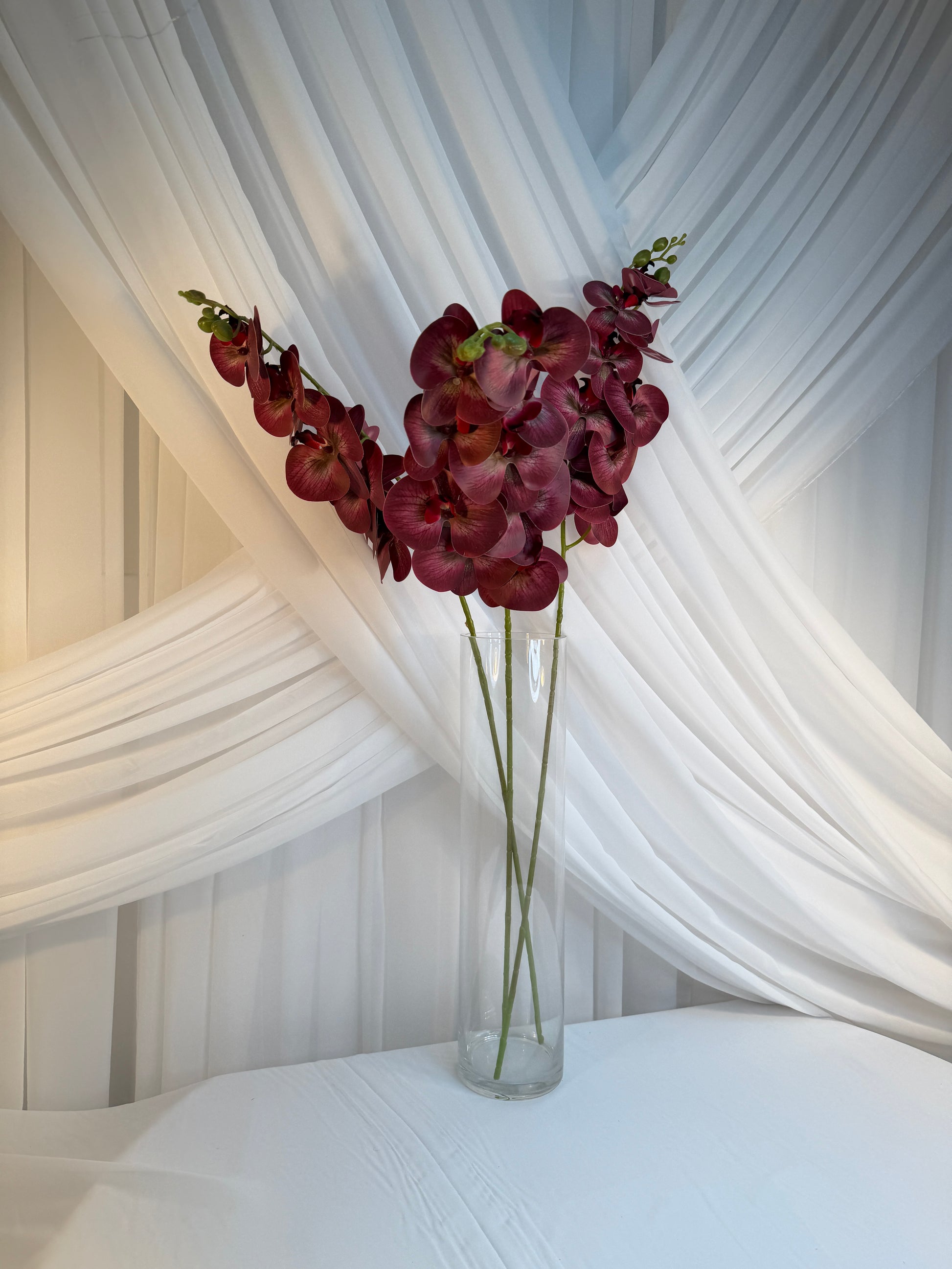 Orhideea cu 9 flori are florile din plastic siliconat si tija din sarma imbracata in plastic. Lungimea unui fir este de 96cm si diametrul 11cm. Se folosesc in aranjamente florale pentru evenimente speciale din viata dumneavoastra, cat si ca floare decorativa in locuinta fiecaruia asezata in vaze transparente sau vase ceramica.