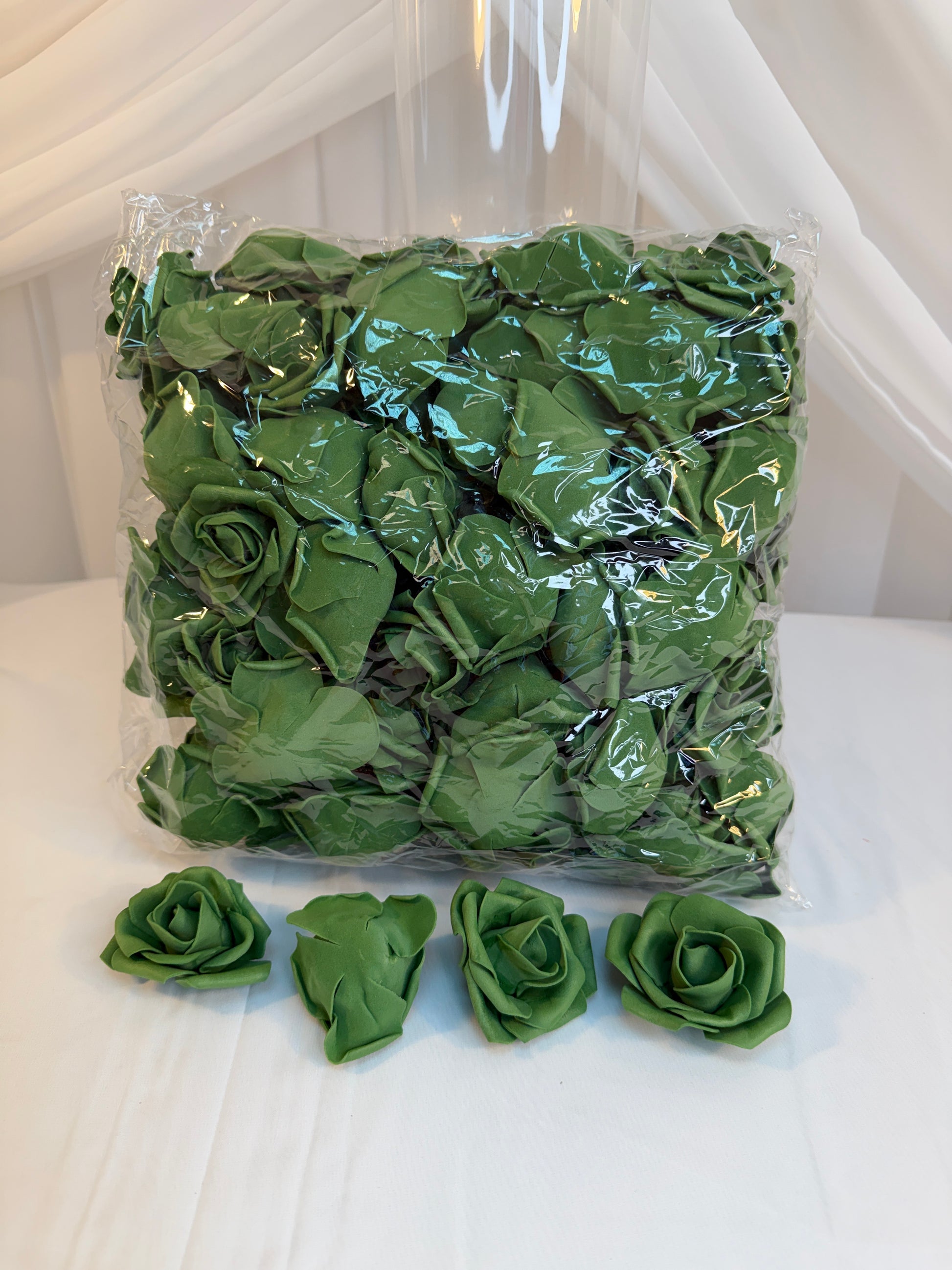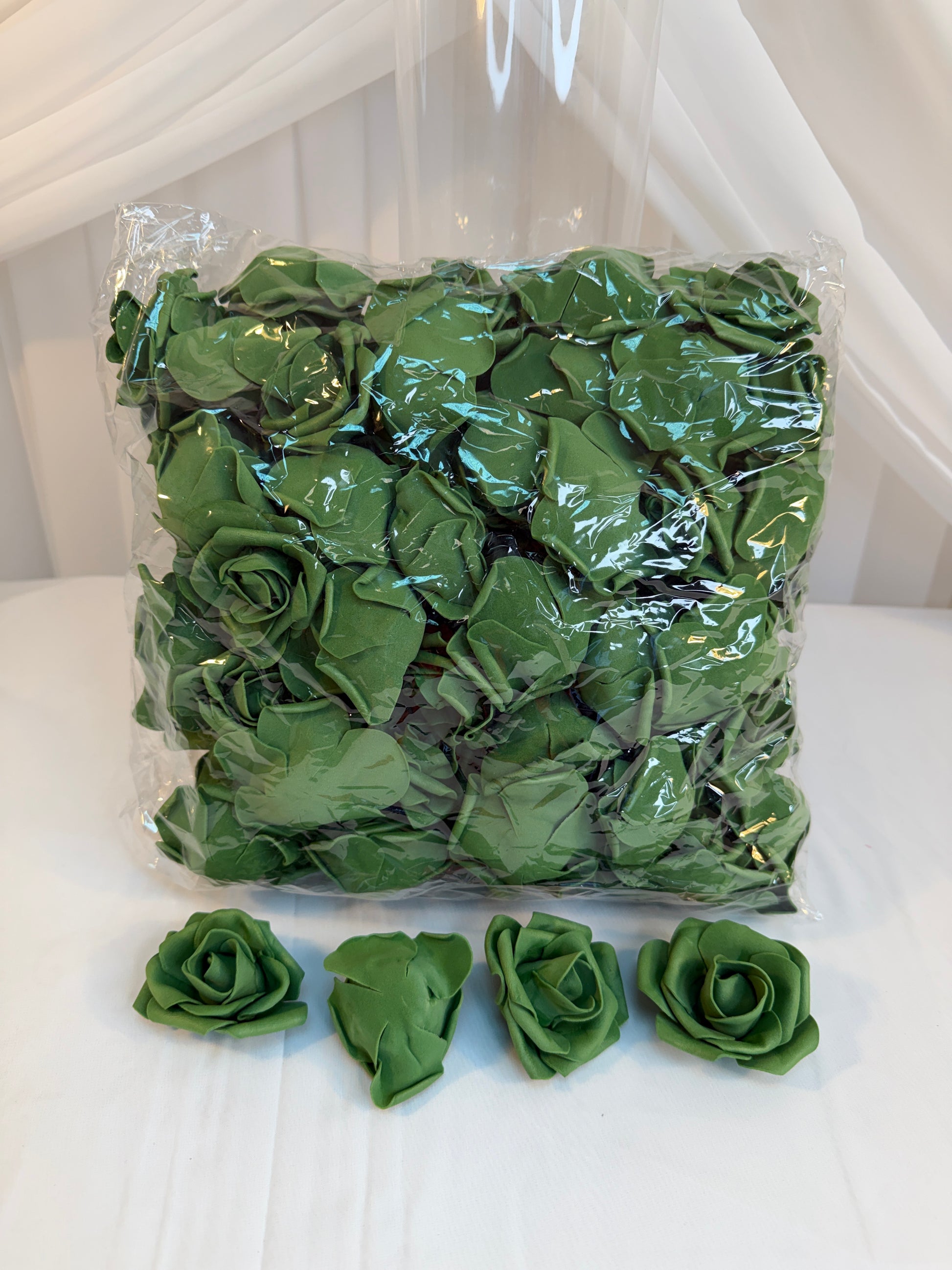 Trandafiri din latex sunt fara codita, au diametrul aproximativ 6.5cm si inaltimea de 5cm. Se folosesc in diferite aranjamente, se lipesc pe forme de polistiren s.a. Se vand 100/set