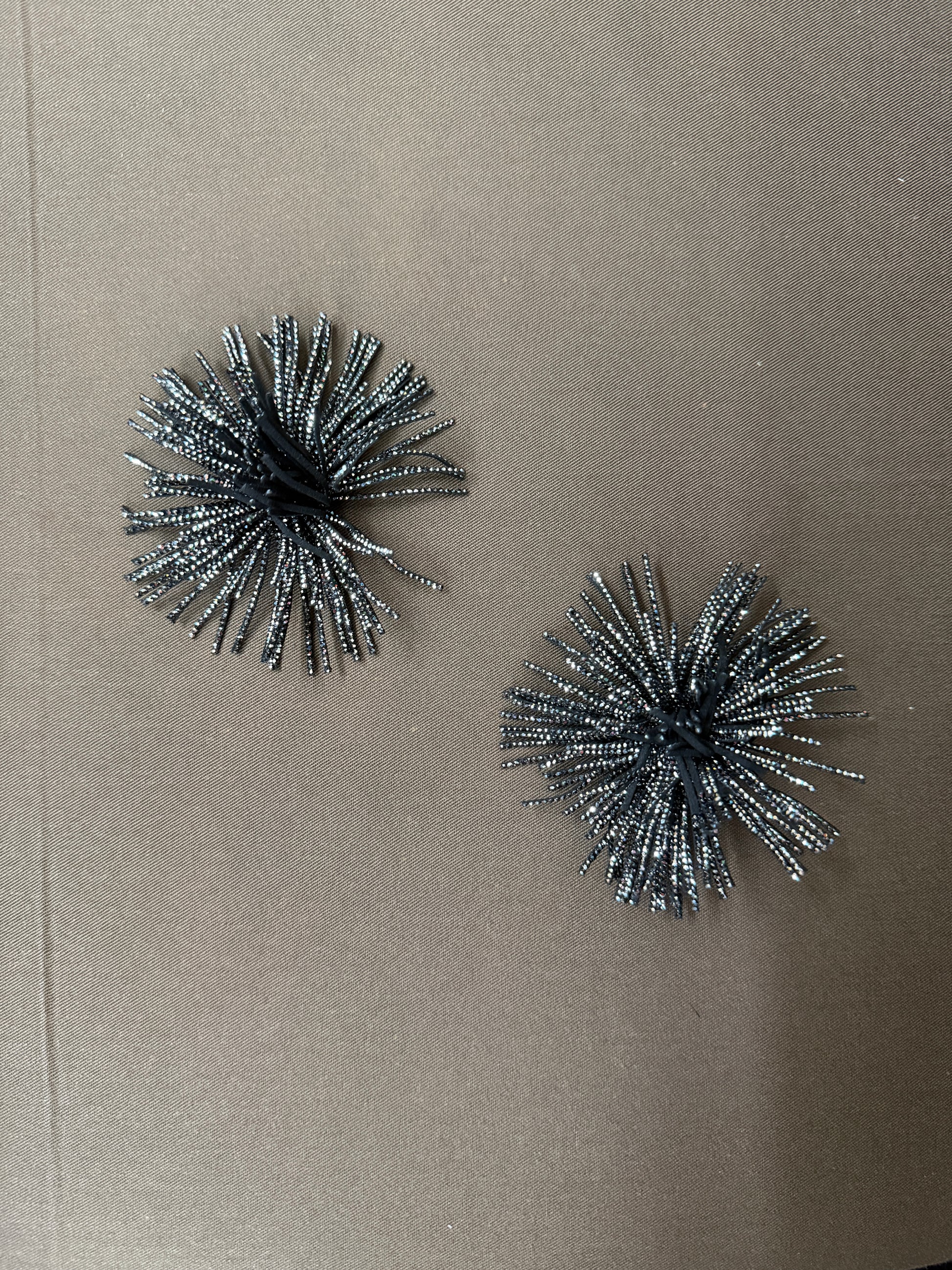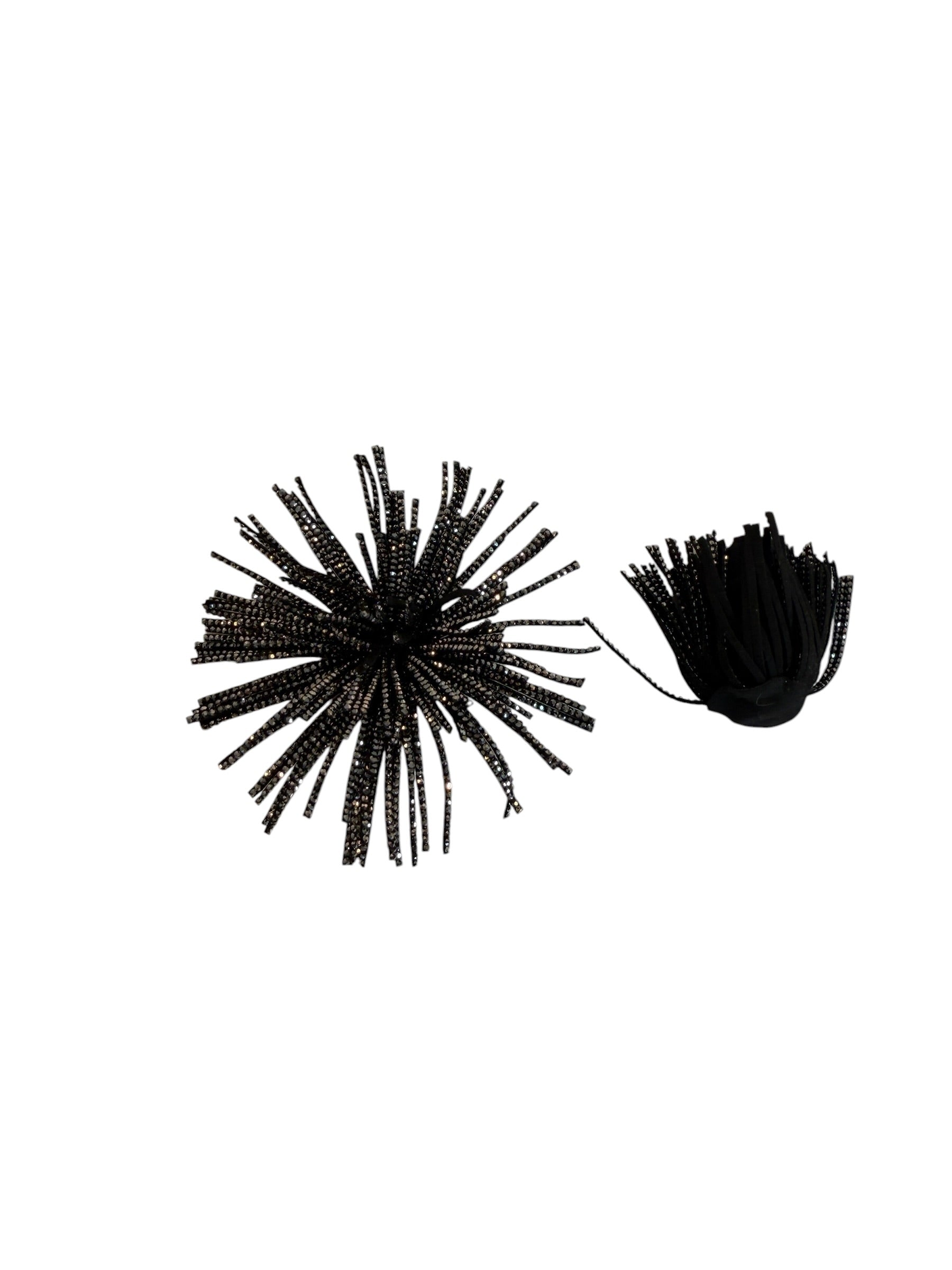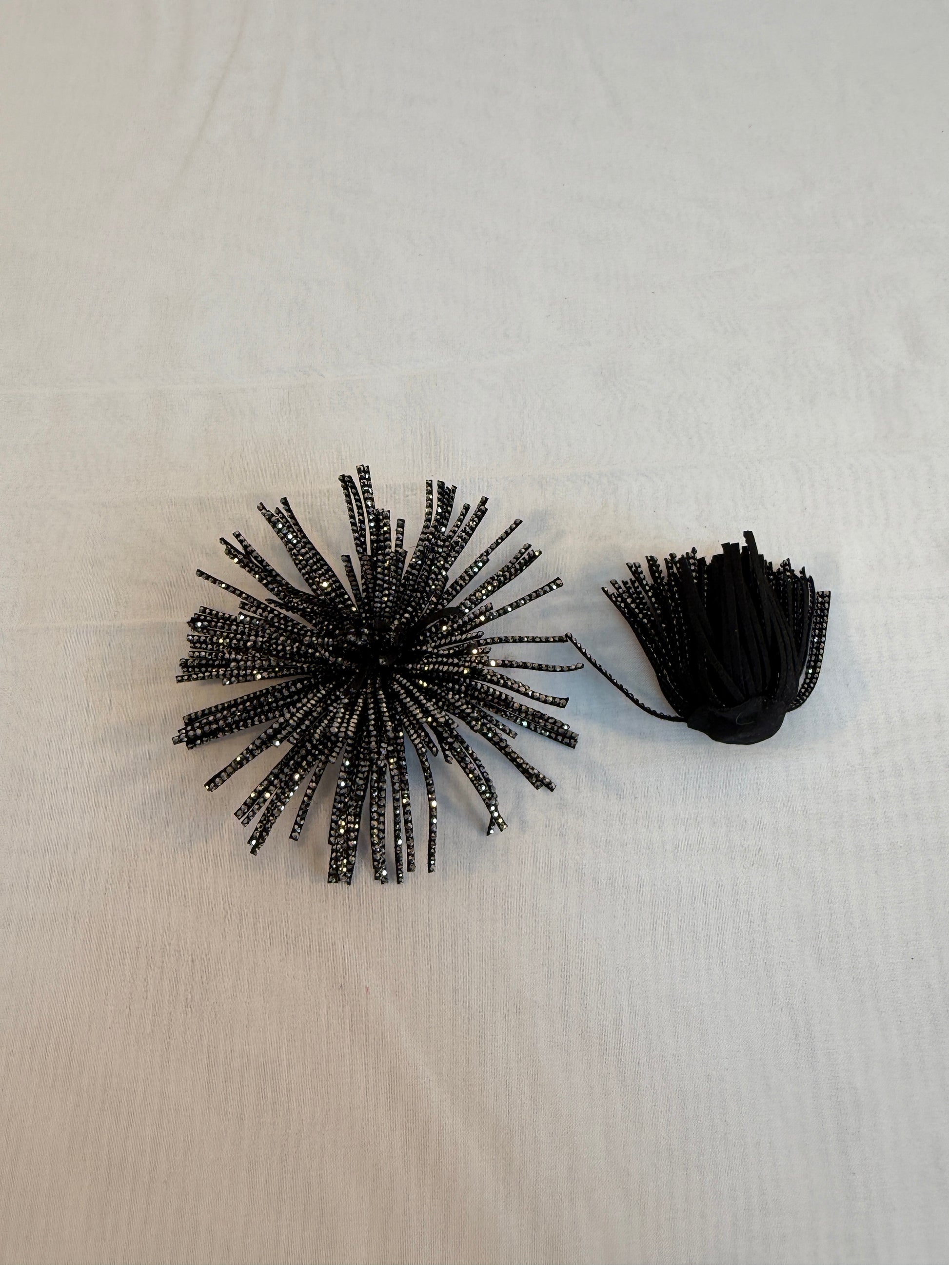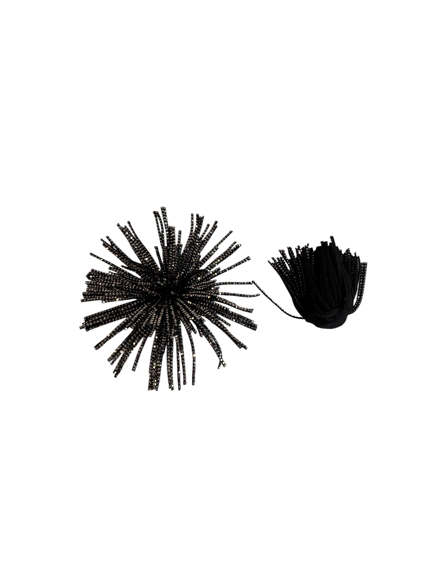 Funde decorative tip ciucurași din material imitație piele întoarsă – negru cu strasuri argintii, diametru 9 cm