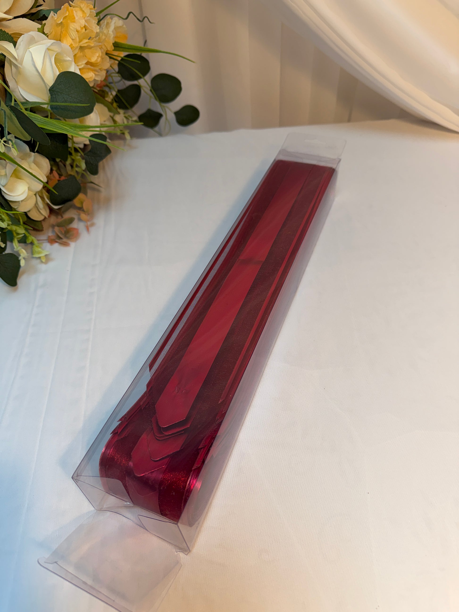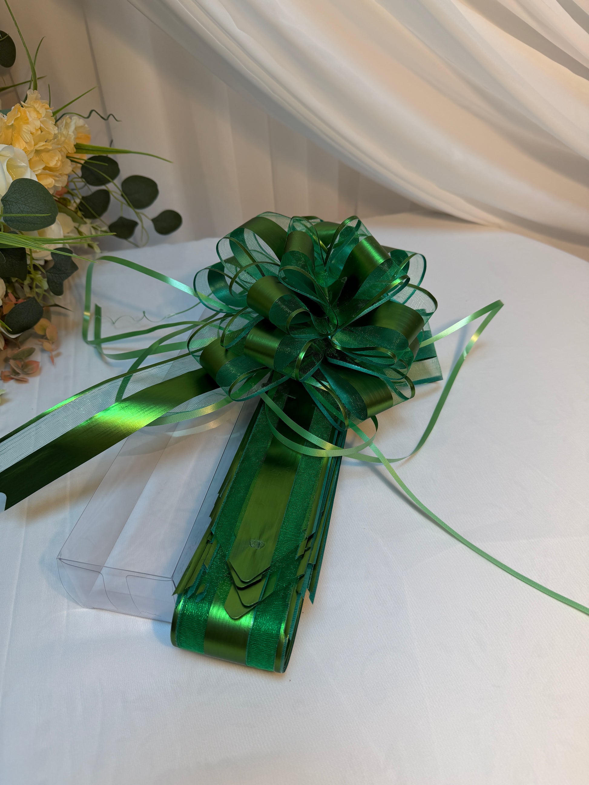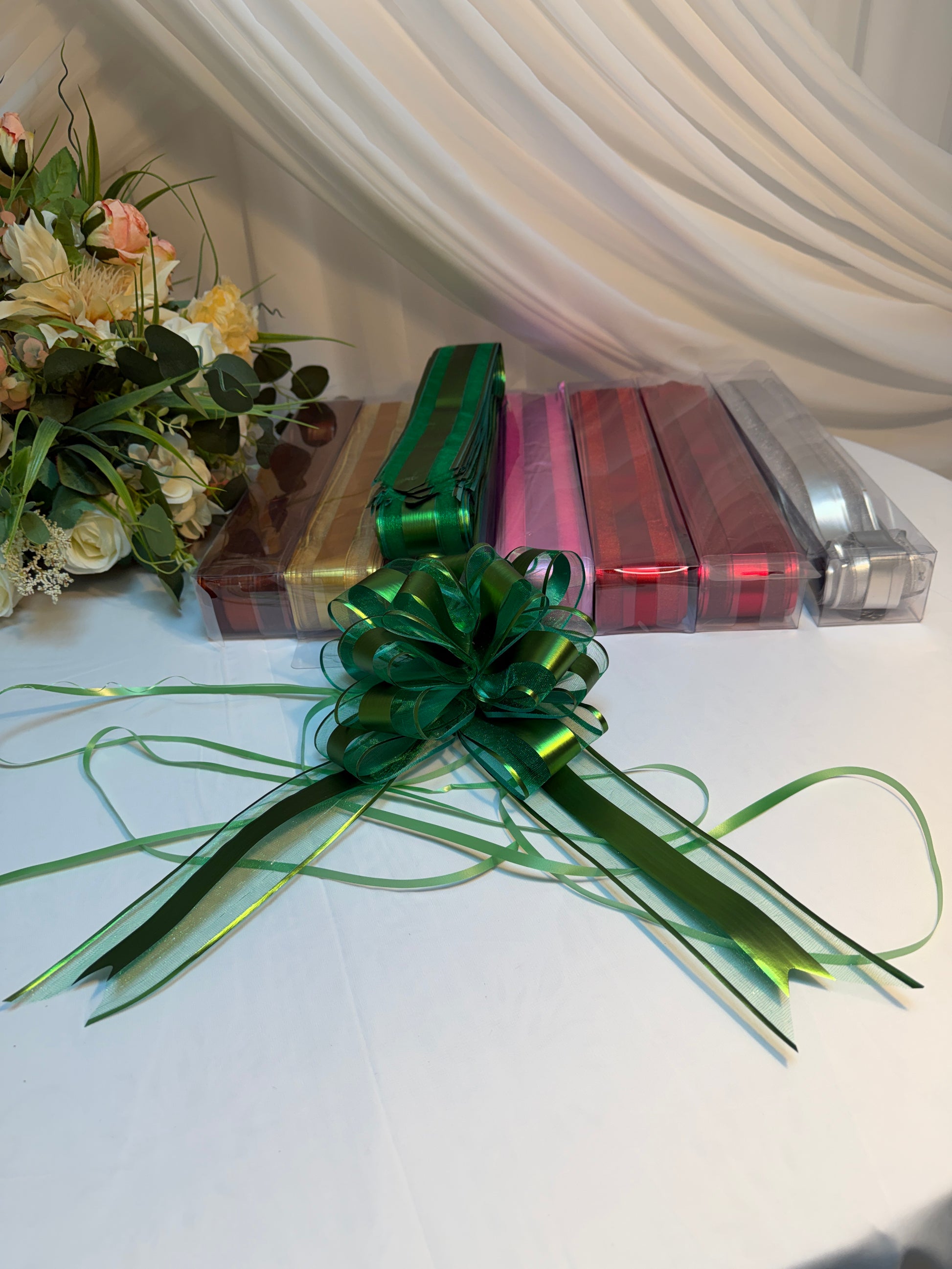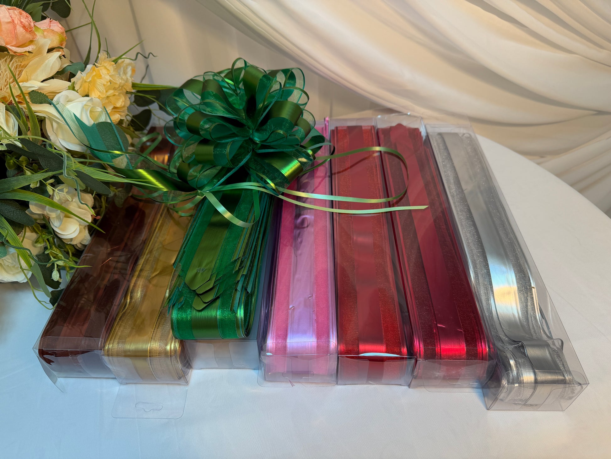 Setul de 10 fundite rapide din tull, cu diametrul de 64mm, reprezintă soluția ideală pentru ambalajul cadourilor dumneavoastră. Confecționate din material ușor și elegant, aceste fundite se aplică instantaneu, economisind timp și efort în procesul de decorare. Perfecte pentru prezentări profesionale, nuntă, aniversări sau orice ocazie specială, fundurile oferă un aspect rafinat și gata-făcut. Dimensiunea generoasă asigură vizibilitate maximă și impact estetic. Pachetul de 10 bucăți garantează suficiente fundite pentru mai multe cadouri, făcând-o o alegere practică și economică pentru comercianți și utilizatori particulari.Funde din organza pentru cadou au lungimea de 1.8metri, latimea de 6.4centimetri si diametrul unei funde de aproximativ 22centimetri. Se vand 10bucati/set