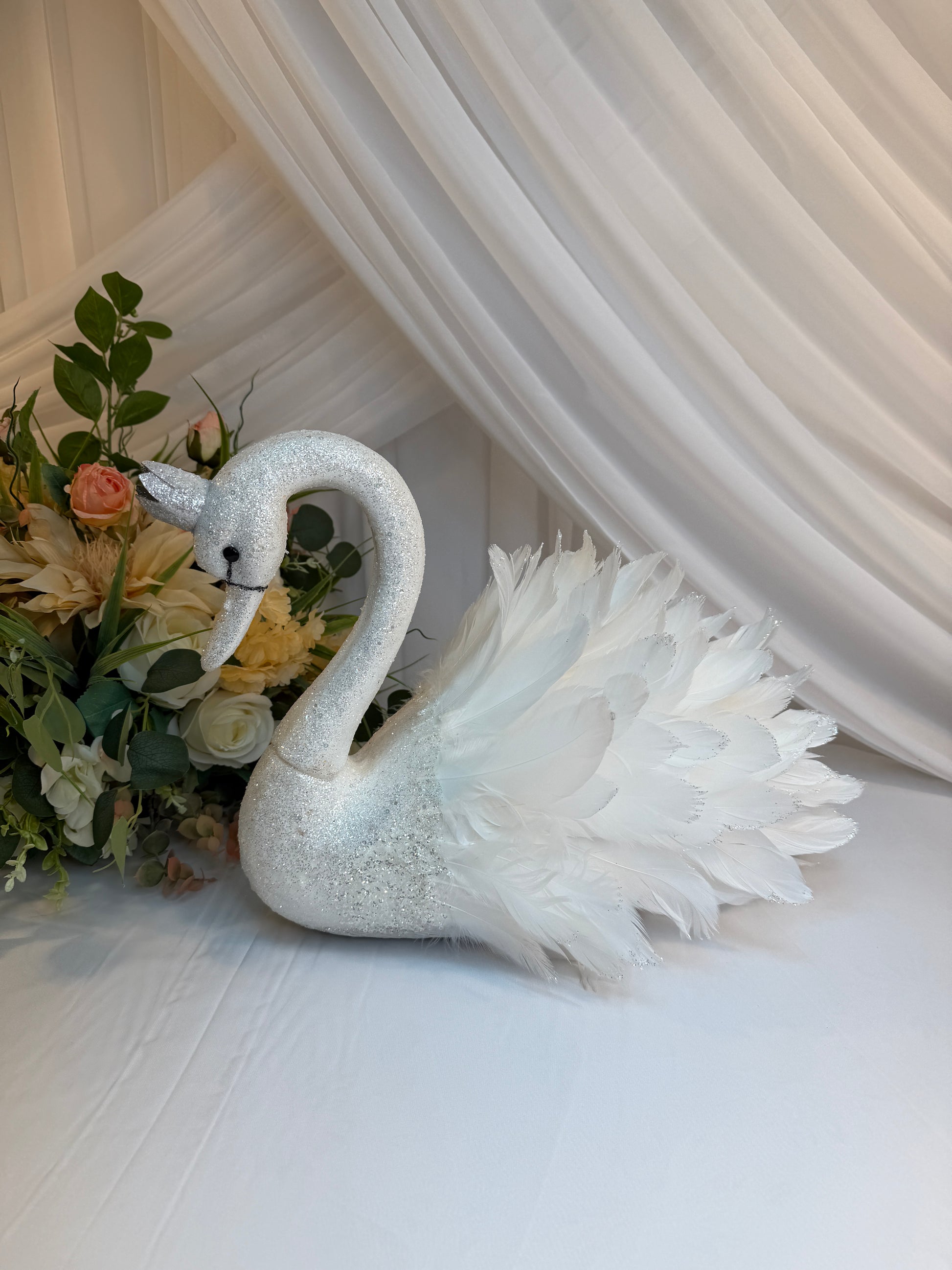 Iarna aceasta va incantam cu aceasta minunatie de decoratiune de Craciun - lebada cu pene naturale si gliter, cu lungimea de 45cm si inaltimea de 32cm. Aceasta bijuterie stralucitoare va fi cu siguranta atractia principala a oricarei incaperi si va aduce un strop de farmec si eleganta in orice decor de Craciun, sali evenimente.