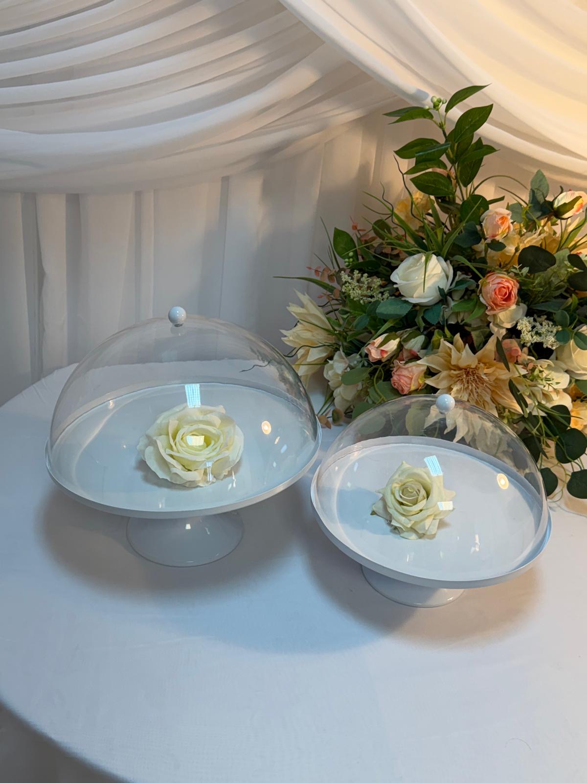 Platoul pentru prăjituri cu capac din acril este o piesă elegantă și practică, ideală pentru servirea și prezentarea prăjiturilor sau deserturilor într-un mod sofisticat. Disponibil în două dimensiuni diferite, acest platou oferă flexibilitate în funcție de cantitatea de deserturi și de spațiul disponibil. Dimensiuni: