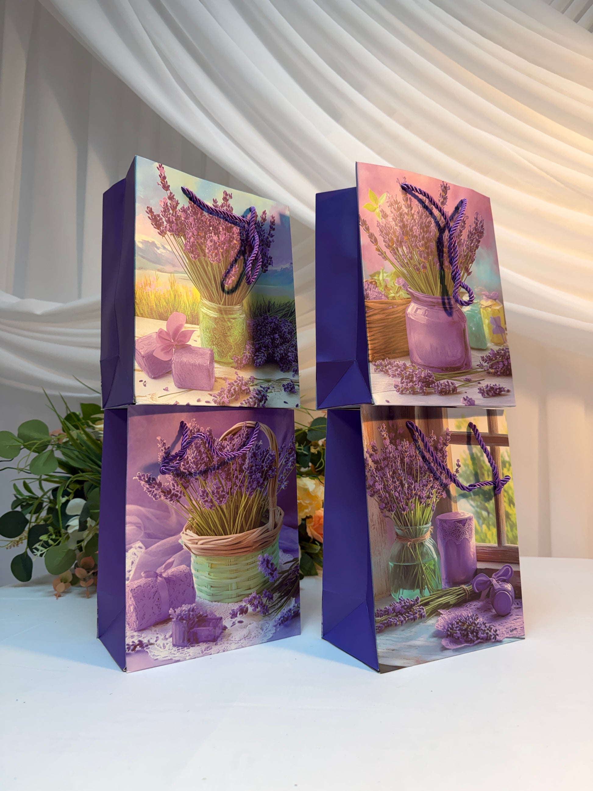 Setul de 12 pungi cadou cu imprimeu Levanda reprezintă o soluție de ambalare premium pentru prezentări rafinate. Disponibile în trei dimensiuni complementare – 23x18x10 cm, 26x32x12 cm și 40x30x12 cm – pungile se adaptează cu ușurință la diverse tipuri de cadouri. Imprimul delicat de levandă adaugă o dimensiune artistică și liniștitoare fiecărei prezentări. Realizate din material de înaltă calitate, rezistent și reutilizabil, aceste pungi reduc necesitatea ambalajelor secundare. Construcția solidă protejează conținutul, iar designul atractiv transformă ambalarea într-o experiență memorabilă. Ideale pentru comercianți care doresc să ofere clienților o prezentare de cadou distinctivă și conștientă de mediu.