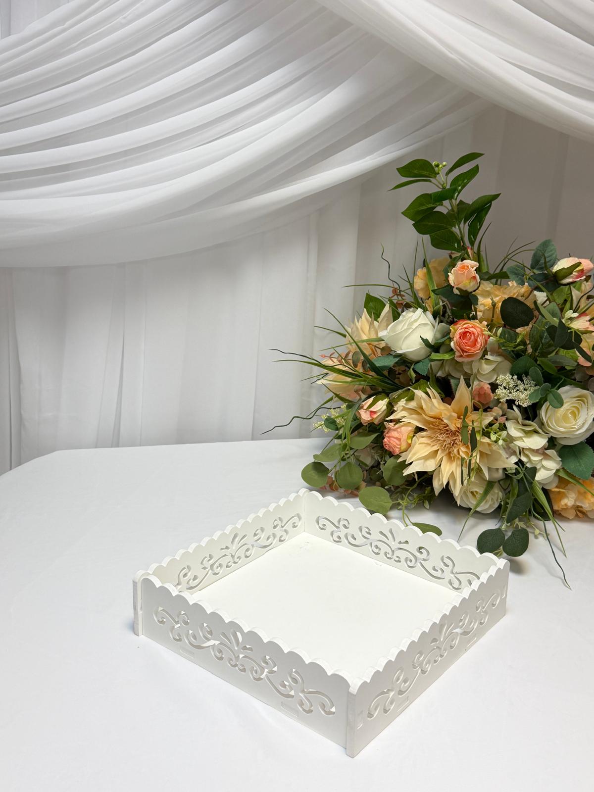 Tăvile dantelate pentru mot, turta, nuntă sau pur și simplu ca decorare în casă sunt accesorii elegante și versatile, potrivite pentru diverse ocazii și scopuri. Aceste tăvi sunt disponibile în două dimensiuni, oferind opțiuni flexibile pentru diferite nevoi și preferințe. Dimensiuni: