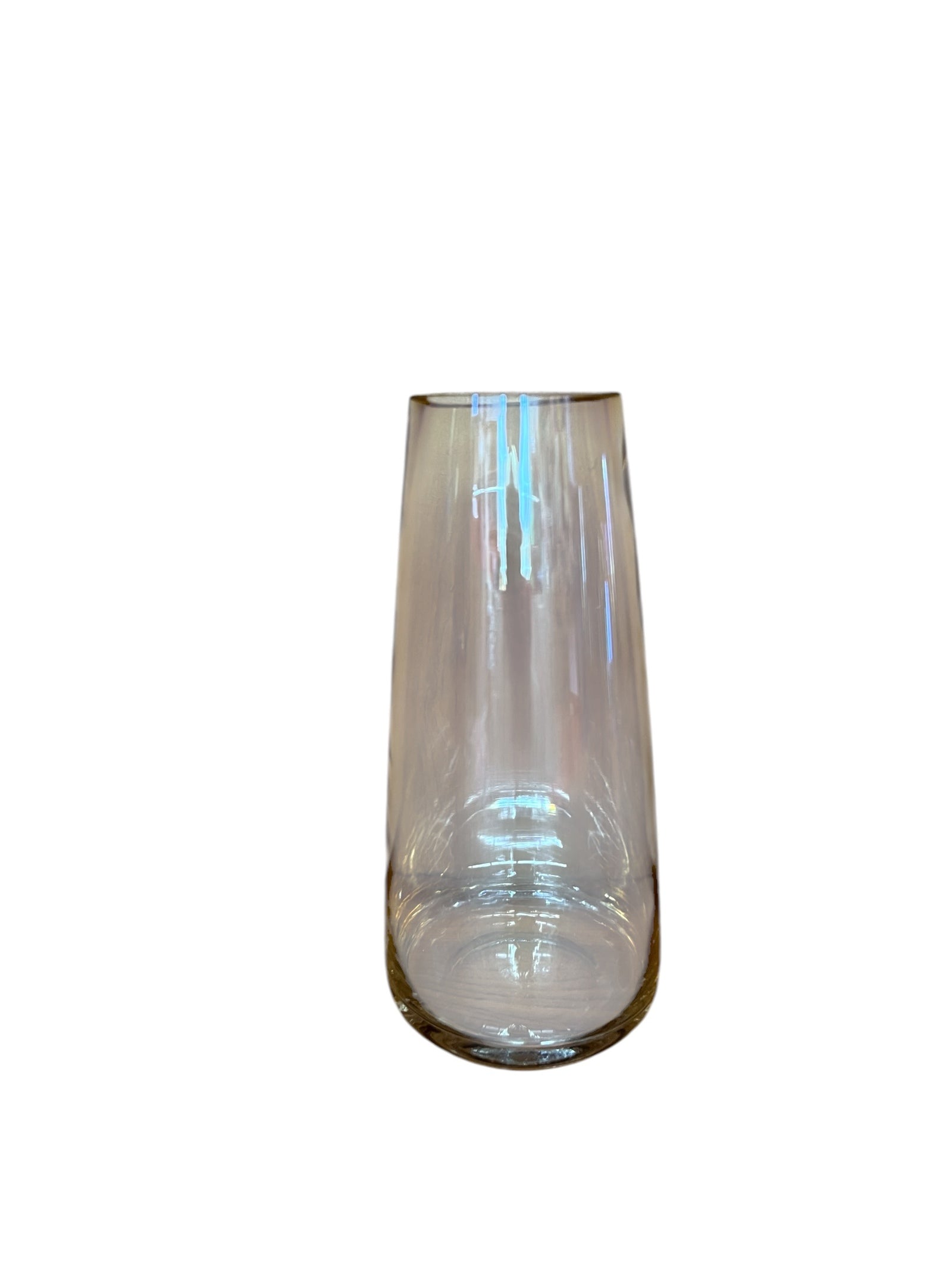 Material: Sticla transparentă cu luciu multicolor. Acest material permite luminii să pătrundă în interiorul vazei, accentuând frumusețea apei și a eventualelor plante sau flori pe care le-ai putea adăuga.